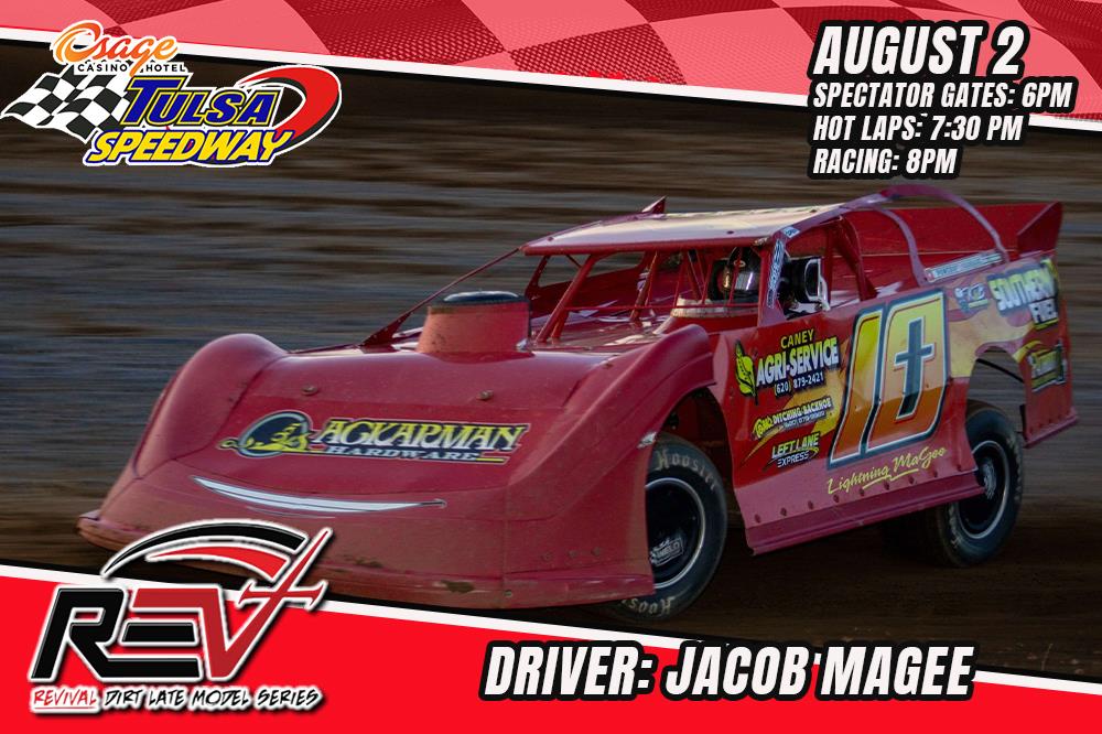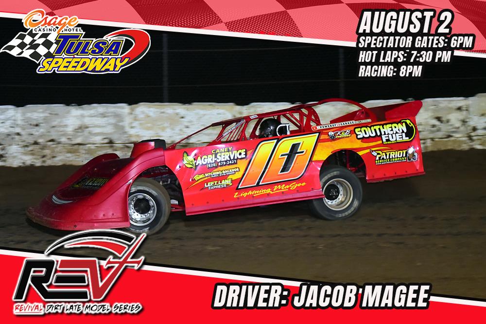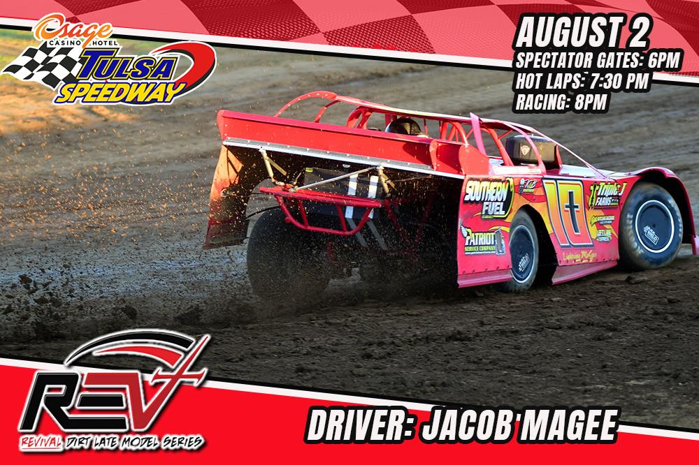 Come cheer for Jacob Magee, in the #10 Lightning MaGee Late Model, as he races wheel to wheel with other Revival Dirt Late Model Series Racers! A fan favorite, he has a car that runs at the front, so come out and see if he can take his second win of the season at Osage Casino & Hotel Tulsa Speedway this Friday, August 2nd!