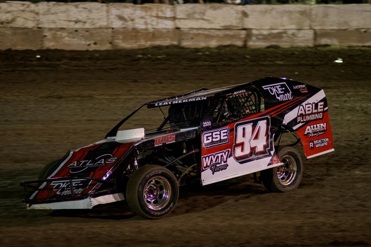 Dustin Leatherman took the win in the USRA B-Mods A Feature after starting 2nd, with Racen Stacy finishing 2nd after starting 6th. Rodney Harper made a big move from 10th to finish 3rd, while Brent Bates impressed by coming from 14th to finish 4th.