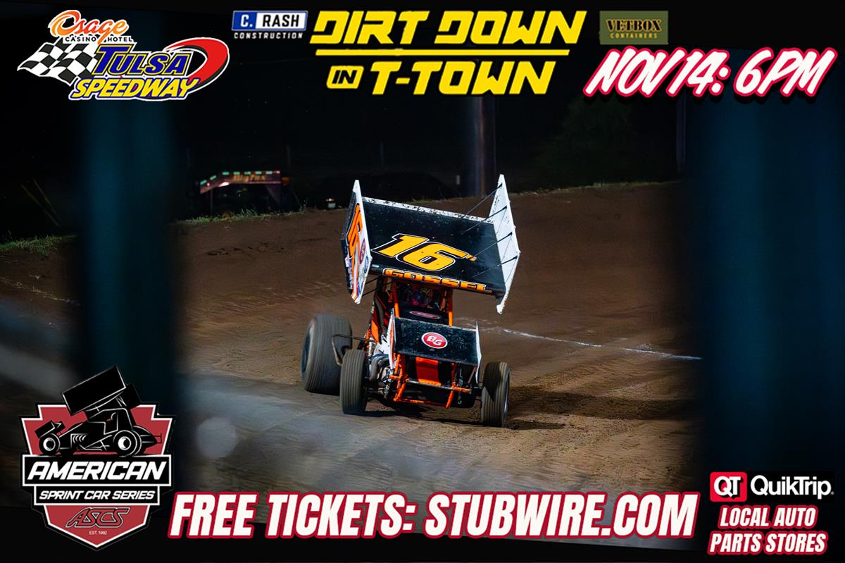 Osage Casino & Hotel Tulsa Speedway is excited to host the first of a thrilling three-night event to close out the year for the American Sprint Car Series. The Dirt Down in T-Town finale at Tulsa Speedway for the American Sprint Car Series National Tour has been rescheduled for Thursday, Nov. 14, with an additional full show that day. The racing will include the Dash and the $6,000-to-win Feature previously scheduled while also adding a $4,000-to-win/$400-to-start event!